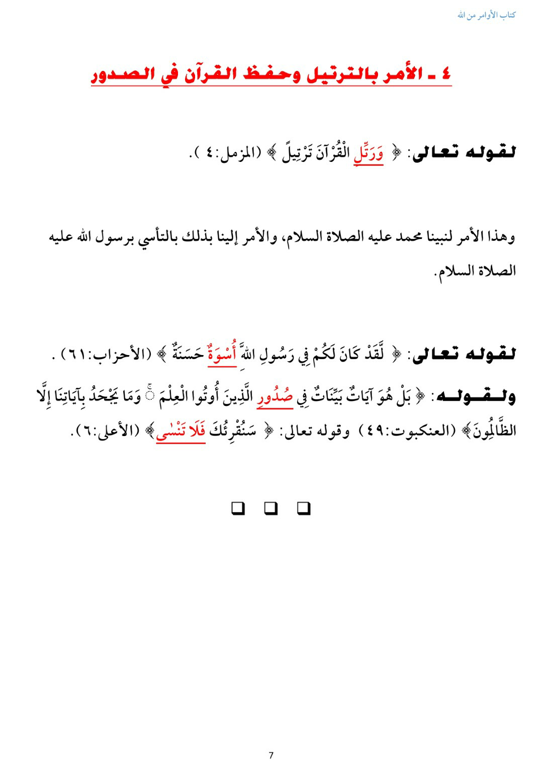 • الأمر بالترتيل و حفظ القرآن في الصدور